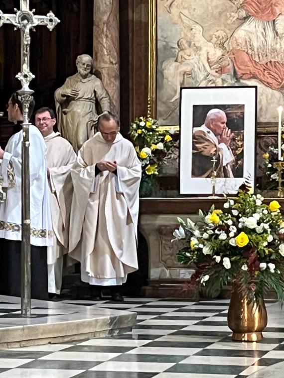"Wszyscy tu dzisiaj zgromadzeni jesteście wielbicielami Jana Pawła II, papieża, który beatyfikował i kanonizował więcej osób niż ktokolwiek przed nim” – zwrócił się bp Schwarz do wiernych przybyłych do katedry z całego Wiednia. Nie zabrakło także Polaków, licznie reprezentowanych przez wspólnoty i organizacje polskie oraz osoby prywatne. Alois Schwarz celebrował Mszę św. w ornacie, który Karol Wojtyła miał na sobie podczas sprawowania liturgii w katedrze św. Szczepana w 1983 r.