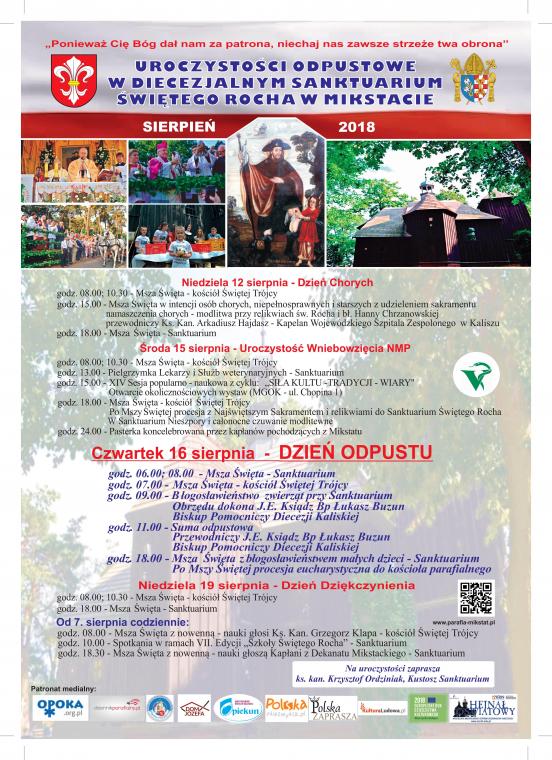 Mikstat nazywany jest miastem szczególnego kultu Świętego Rocha. W trosce o przekaz pięknych tradycji odpustowych organizowana zostanie już VII edycja Szkoła Świętego Rocha dla młodych parafian mikstackich. Czym jest ”Rochowa Szkoła”? To spotkania przybliżające dzieciom postać Świętego Patrona, a także wspólnej modlitwy nowennowej, poznawania zwyczajów odpustowych. Na dzieci i młodzież czeka wiele atrakcji.