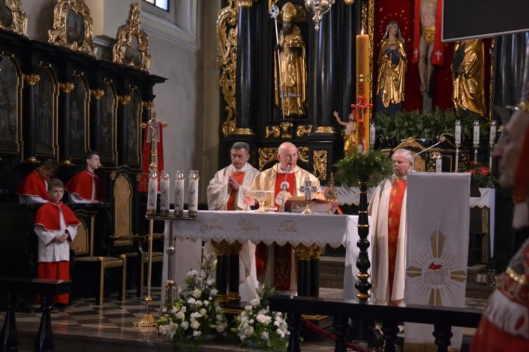 Jezu, dzisiaj twoje święto gdzie od wieków w Wieruszowie jesteś wielbiony w swoim Pięciorańskim obrazie - prosimy Cię mniej miłosierdzie dla nas i dla całego Świata.Uroczystości odpustowe w wieruszowskim sanktuarium ubogacając swoim śpiewem chór Lira oraz pełnili honorową wartę halabardziści ubrani swój galowy strój. Były obecne relikwie, które parafia posiada - św.Jana Pawła II i św.Faustyny Kowalskiej Apostołów Miłosierdzia.