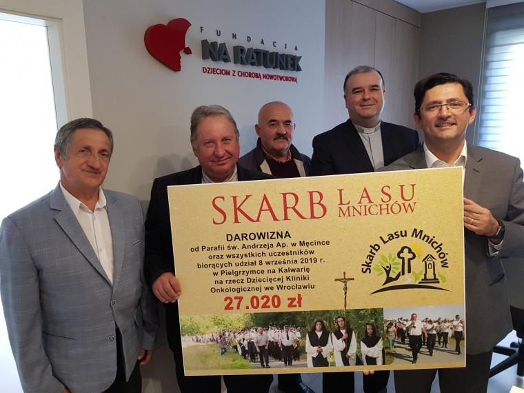 W poniedziałek 14 października owoc pielgrzymki został przekazany na ręce prezesa Fundacji Przemysława Pohrybeniuka. Wraz z ks. Markiem Kluwakiem fundację odwiedzili: Andrzej Szember, Zgmunt Osiatycki i Józef Kuraś. Jak zapewnił Prezes, każda złotówka zostanie przeznaczona na leczenie dzielnych wojowników chorych na raka z Przylądka Nadziei.