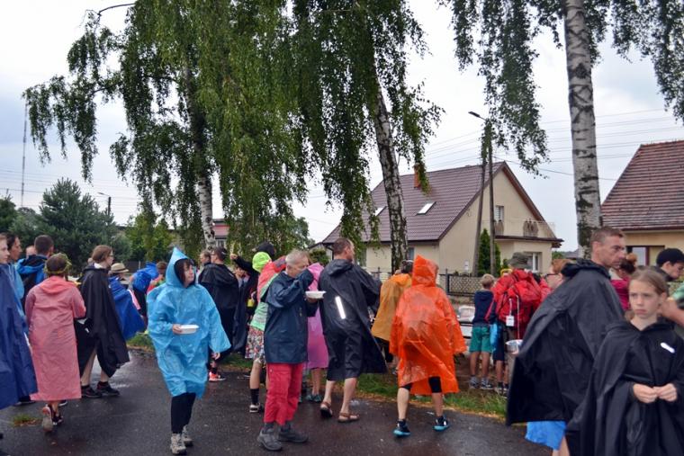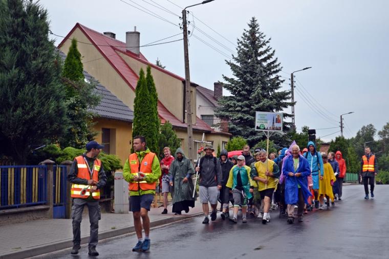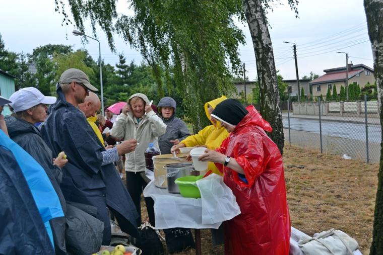 Wiele grup przeszło w ten lipcowy deszczowy dzień przez mikstacką parafię. Jak wspomniano, grupa 8 od lat przyjmowana jest na nocleg przez mieszkańców Mikstatu. Pątnicy z grupy 8 spotkali się o godz. 19:00 w kościele farnym pw. Świętej Trójcy na adoracji Najświętszego Sakramentu. Prowadzący je kapłan w słowach rozważania zwrócił uwagę na cztery etapy rozwoju wiary Piotra. Zachęcał jednocześnie zebranych w świątyni, by odpowiedzieli sobie na pytanie na jakim etapie jest ich wiara. Podczas adoracji była okazja do sakramentu pokuty i pojednania. Błogosławieństwo Najświętszym Sakramentem zakończyło modlitewną część spotkania. Z kolei grupa 9 nocowała w Komorowie. Od pięciu lat po drodze nawiedzają Diecezjalne Sanktuarium Świętego Rocha. Tu zostali powitani przez kustosza miejsca ks. kan. Krzysztofa Ordziniaka, który przybliżył im postać św. Rocha, akcentując rolę i znaczenie krzyża w Jego życiu. Podkreślił, że został on wymodlony rodziców przez wstawiennictwo Matki Bożej. Ks. kustosz zachęcał pątników, by „zaprzyjaźnili się” z tym Świętym, gdyż jest on patronem pielgrzymów. Wymowne było to spotkanie pielgrzymów ze Świętym Rochem. Przecież On też był pielgrzymem, więc doskonale rozumie ich ból, cierpienie, zmęczenie, ale jednocześnie może być dla nich wzorem wzajemnej służby, pomocy, głoszenie miłości Boga do człowieka właśnie na pielgrzymim szlaku. Następnie przy wystawionym Najświętszym Sakramencie pielgrzymi odśpiewali Koronkę do Miłosierdzia Bożego i wyruszyli w dalszą drogę do niedalekiego Komorowa, by tam nieco odpocząć. Rano obie grupy wyruszą na kolejny etap wędrówki… Taki jest pielgrzymi los. Jasna Góra coraz bliżej i już za pięć dni pątnicy staną przed tronem Matki i Królowej, by złożyć u Jej stóp swoje radości i troski, prośby i podziękowania.