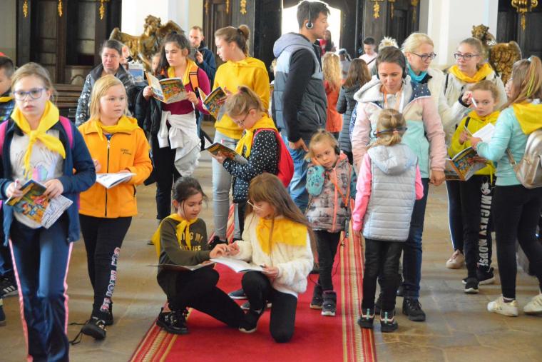 Kolejnym punktem spotkania była gra terenowa, w której uczestniczyła większość małych pielgrzymów. Z pomocą specjalnie przygotowanej książeczki-przewodnika po sanktuarium dzieci miały do wykonania konkretne zadania, dzięki którym poznawały także tajniki zabytków krzeszowskiego opactwa.