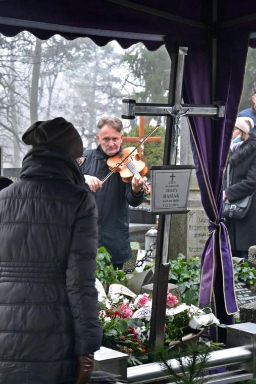 Kontynuując ks. biskup zwrócił się bezpośrednio do zmarłego księdza Jerzego, z którym - jak podkreślił - łączyła go więź koleżeństwa i przyjaźni. Ksiądz biskup spotkał się z ks. Jerzym w seminarium oraz przez trzy lata studiowali razem na KUL -u. Przez rok ks. Rasiak posługiwał wspólnie z księdzem biskupem w parafii pw. Świętej Rodziny. Następnie ks. biskup podziękował ks. Jerzemu za jego serdeczność, dobre słowo. Podkreślił, że Pan Bóg obdarzył ks. Rasiak wieloma talentami, których nie zakopał, ale rozwijał. Wśród tych talentów wymienił celebrans talent pogodnego ducha, uśmiechu, pięknego słowa, muzycznego głosu, wrażliwości na piękno przyrody i otaczającego nas świata. Kaznodzieja zaakcentował, że ks. Jerzego fascynowało piękno wytworzone przez człowieka. Był tym, który jak kontynuował ks. biskup wiedział, że człowiek oprócz dobra i prawdy potrzebuje także doświadczenia piękna.