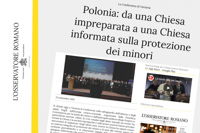 Artykuł w wersji skróconej ukazał się na łamach angielskojęzycznej i włoskojęzycznej wersji "L'Osservatore Romano" w związku z odbywającą się w Warszawie w dniach 19-22 września br. konferencją "Naszą wspólna misją ochrona dzieci Bożych".