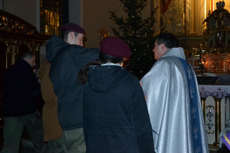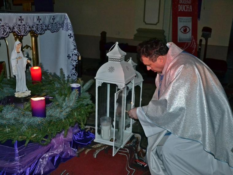 Po zakończeniu mszy świętej, przy banerze przedstawiającym Grotę Narodzenia Pana Jezusa ks. proboszcz zapalał świece, lampki przyniesione przez wiernych. Wiele osób zabrało do swoich domów Betlejemskie Światło Pokoju. Stojące przy ołtarzu w kościele i zaniesione do naszych domów Betlejemskie Światło Pokoju przypomina nam, że Pan jest już blisko, naprawdę blisko. Mobilizuje nas ono do czuwania i oczekiwania wraz z Maryją Józefem na przyjście Pana.