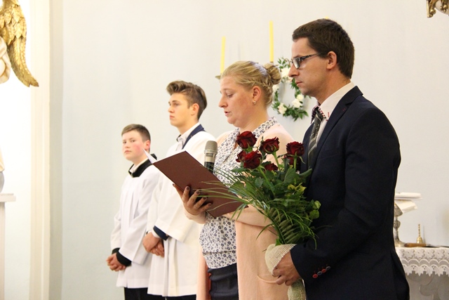 Relikwie bł. ks. Jerzego Popiełuszki zostały przyniesione w procesji z darami przez przedstawicieli rodziny zmarłego ks. prof. Antoniego Lewka.