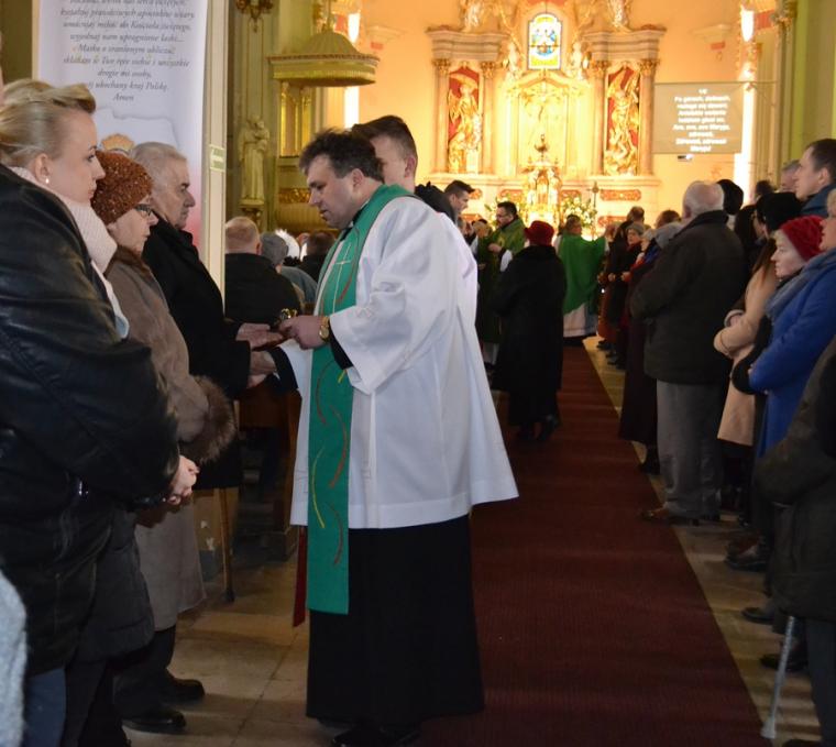 Już po raz dwudziesty szósty - 11 lutego- w dniu, w którym Kościół wspomina Matkę Bożą z Lourdes obchodzimy Światowy Dzień Chorego. W tym roku przypadł w niedzielę. Po raz pierwszy Światowy Dzień Chorego obchodzony był w 1993 roku. Został ustanowiony z woli i inicjatywy św. Jana Pawła II. Ustanowiony przez św. Jana Pawła II Światowy Dzień Chorych ma skierować naszą uwagę na potrzeby ludzi chorych i cierpiących, staje się okazją do pogłębiania naszej wrażliwości na potrzeby bliźnich potrzebujących pomoc, ale i tę pomoc nam świadczących. Co roku z okazji tego dnia przygotowywane jest przez Papieża specjalne orędzie, a w kościołach na całym świecie sprawowane są Msza Święte w intencji osób chorych i starszych, niepełnosprawnych oraz ich opiekunów.W mikstackiej wspólnocie parafialnej sprawowana była w kościele pw. Świętej Trójcy o godz. 11:00. Przy ołtarzu stanęli ks. kan. Grzegorz Klapa i ks. wikariusz Krzysztof Lipiński. Ks. kan. Grzegorz modlił się w intencji chorych, starszych, niepełnosprawnych i ich opiekunów. Trzeba tu dodać, że sam od lat doświadczany krzyżem cierpienia pokazuje, że można mimo choroby i cierpienia służyć Bogu i ludziom. Natomiast posługujący w naszej parafii ks. Krzysztof Lipiński jest jednocześnie Diecezjalnym Duszpasterzem Osób Niepełnosprawnych. Podczas tej Eucharystii był udzielany Sakrament Namaszczenia. Bardzo wielu parafian obecnych w kościele skorzystało z tej okazji i przyjęło go. Liczba osób, które z okazji XXVI Światowego Dnia Chorego przyjęły ten sakrament jest świadectwem, że zmieniło się nasze nastawienie do niego, że właściwie rozumiemy jego sens i znaczenie. Ks. proboszcz Krzysztof Ordziniak wyjaśniał, że jest to sakrament uzdrawiając, umacniający w słabości, a w przypadku osób, które nie mogą już skorzystać z sakramentu pokuty, także gładzący grzechy, jeżeli chory miał w sercu pragnienie pojednania się z Panem Bogiem. Zachęcał także wiernych, aby w przypadku ciężkiej choroby bliskiej osoby, zatroszczyli się o to , by został jej udzielony Sakrament Namaszczenia Chorych.Papież Franciszek, podobnie jak Jego poprzednicy, przygotował z okazji XXVI Światowego Dnia Chorego specjalne orędzie. Jego myślą przewodnią są słowa: „Oto syn Twój (…) Oto Matka twoja”. I od tej godziny uczeń wziął Ją do siebie” (J 19, 26-27). Niech ten kolejny Światowy Dzień Chorego będzie okazją do wyrażenia naszej wdzięczności osobom chorym i cierpiącym. Dziękujemy za świadectwo wiary i ufności, poprzez które, pokazują nam, że także w cierpieniu można i należy trwać przy Chrystusie, ofiarując je za innych, którym tej wiary i ufności brak. Dziękujemy za modlitwy, którymi chorzy i cierpiący wspierają wiele dzieł podejmowanych w parafiach, za modlitwy zanoszone przez nich w intencji rodzin, osób które zagubiły się na drogach życia. Św. Jan Paweł II powiedział „ kiedy ludzie cierpią, kiedy cierpi człowiek, potrzebny jest drugi człowiek przy cierpiącym. Blisko niego. Bo tak wypełnia się obecność Chrystusa w nich obu: w człowieku cierpiącym i w człowieku, który jest przy nim, który się nim opiekuje”. A u kresu życia będziemy przecież sądzeni z miłości. I jeszcze jedna refleksja. Światowy Dzień Chorego ma skłaniać nas m.in. refleksji nad sensem cierpienia, nad miejscem chorych w Kościele i we wspólnocie parafialnej. W mikstackiej wspólnocie parafialnej czci się w sposób szczególny św. Rocha, który patronuje osobom chorymi i ich opiekunom. Dlatego od kilku lat w scenariuszu uroczystości odpustowych ku czci św. Rocha w niedzielę tuż przed nimi przeżywamy nasz Parafialny Dzień Chorych. W tym dniu chorzy i starsi przybywają do Diecezjalnego Sanktuarium Świętego Rocha. Już dziś zapraszamy do przeżycia tego niezwykłego spotkania modlitewnego. W tym roku odbędzie się ono 12. sierpnia i będzie zapewne kolejną okazją do pochylenia się nad tajemnicą i sensem cierpienia.