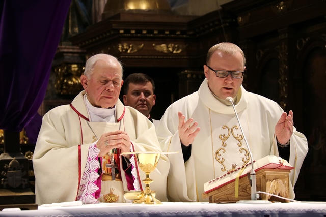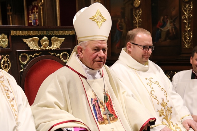 Przekonywał, że Maryja i św. Józef są nierozłączni. - Bóg wybrał Maryję i Józefa, żeby byli małżonkami i rodziną Jezusa, naszego Zbawiciela. Tych dwoje jest razem w zamyśle zbawczym Boga. Niech Maryja i św. Józef wezmą każdego z nas za ręce, tak jak na tym obrazie za ręce biorą Jezusa, i poprowadzą do Jezusa, do Boga, do zjednoczenia z Bogiem. Gdy skończy się to życie tutaj na ziemi niech nas Maryja i Józef zaprowadzą do Boga i to będzie radość, to będzie szczęście, to będzie niebo – mówił bp Napierała.