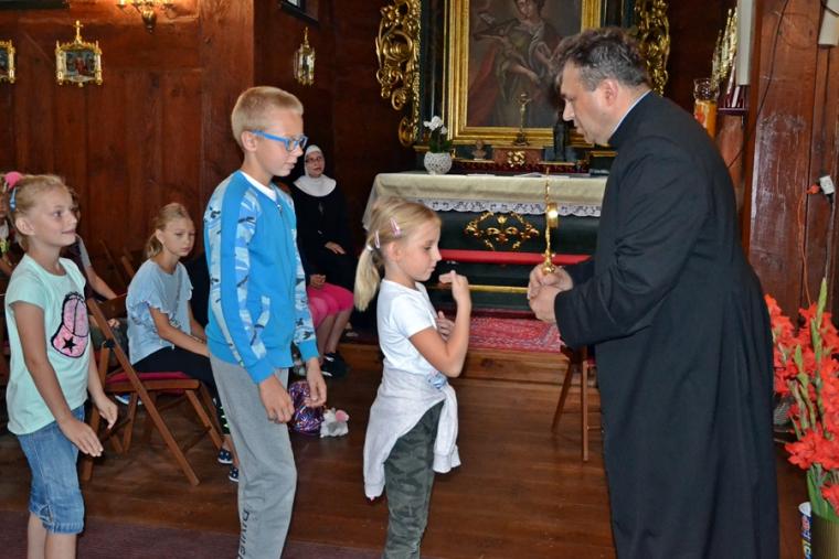 Można powiedzieć, że stało się już tradycją w mikstackiej wspólnocie, że w dniach poprzedzających uroczystości odpustowe ku czci św. Rocha z obrzędem błogosławieństwa zwierząt ks. kan. Krzysztof Ordziniak kustosz sanktuarium zaprasza młodych do szkoły. Spieszymy z wyjaśnieniem, że jest to Szkoła Rochowa, niezwykła, łącząca w sobie wiele elementów takich jak modlitwa, śpiew, nauka, zabawa, spotkania w ciekawymi ludźmi. Trzeba dodać, że czyni to chyba w sposób dla młodych atrakcyjny skoro mimo wakacji chętnie do niej przychodzą. Pierwszy dzień w Rochowej Szkole przebiegał pod hasłem: „Chrzest jako brama Kościoła”. Podczas spotkania ks. kan. Krzysztof Ordziniak poprowadził modlitwę nowennową z dziećmi oraz zapoznał je z pierwszym okresem życia patrona sanktuarium. Zwrócił uwagę na słowa testamentu duchowego pozostawionego mu przez ojca. Był także czas na rozmowę z dziećmi o dziedzictwie, tym należącym do nich, do ich rodzin. Ponadto ks. kan. Krzysztof wyjaśnił ideę spotkań w Rochowej Szkole w tym wyjątkowym dla mikstackiej wspólnoty parafialnej czasie. Piękna pogoda zachęcała do zabawy na świeżym powietrzu. Ich organizacją zajęła się s. Małgorzata. Jak w prawdziwej szkole były i zadania domowe. Ksiądz kustosz poprosił dzieci, by wypisały prośby i podziękowania do modlitwy nowennowej.