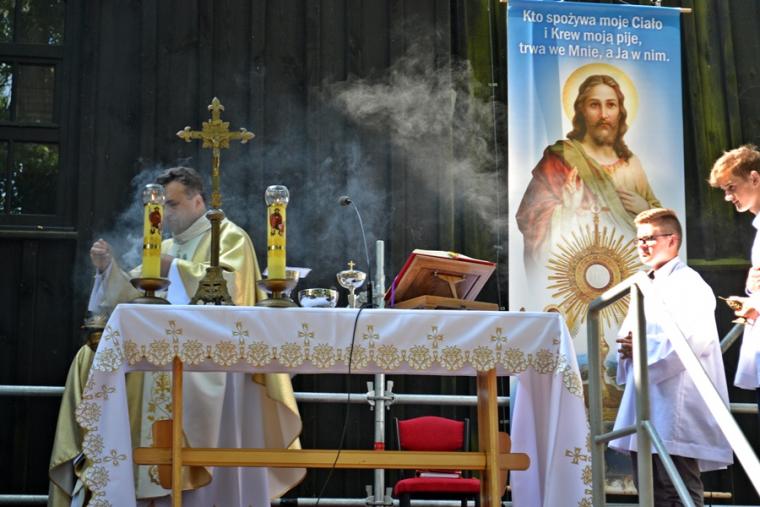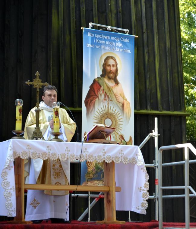 31. maja obchodziliśmy Uroczystość Najświętszego Ciała i Krwi Pańskiej. Jest to dzień wyjątkowy w życiu Kościoła, ale także w życiu każdej wspólnoty parafialnej. . W tym szczególnym dniu Jezus ukryty pod postacią chleba w Najświętszym Sakramencie opuszcza kościół, by przemierzając ulice miast, miasteczek, wiosek zobaczyć, jak się powodzi Jego dzieciom. W mikstackiej wspólnocie parafialnej uroczysta suma, po której ulicami miasta wyruszyła procesja do czterech ołtarzy została odprawiona przy Diecezjalnym Sanktuarium Świętego Rocha o godz. 9:00. Przewodniczył jej ks. kan. Krzysztof Ordziniak, kustosz sanktuarium, współcelebransem był ks. wikariusz Krzysztof Lipiński. Ksiądz proboszcz polecał w Eucharystii wszystkich parafian, tych którzy przygotowywali ołtarze oraz tych, którzy będą obsługiwali procesje. Homilię wygłosił ks. kan. Krzysztof Ordziniak. Rozpoczynając podkreślił, że dwa razy w ciągu roku Bóg opuszcza mury kościoła, by udać się do swoich dzieci. Czyni to w uroczystość Wszystkich Świętych, kiedy to idzie na cmentarze, by opłakiwać wraz z nami naszych bliskich, przyjaciół, znajomych. To drugie wyjście ma charakter radosny i ma miejsce właśnie w uroczystość Najświętszego Ciała i Krwi Pańskiej. W tym dniu- jak podkreślił celebrans przygotowujemy ołtarze, dekorujemy domy, aby przywitać Pana, nawiedzającego zagrody swoich dzieci. Kontynuując ks. kan. przywołał słowa pieśni „ Zróbcie Mu miejsce, Pan idzie z nieba…” zaakcentował, że wskazuje ona z jednej strony cel wyjścia Jezusa ze świątyni, ale także sposób w jaki powinniśmy czcić przyjście Pana. Kaznodzieja wskazał, że pieśń ta wskazuje dary jakie przynosi nam Pan. Zaznaczył, że udział w procesji jest wyznaniem naszej wiary. Przytoczył wydarzenie z czasów okupacji, kiedy to grupa więźniów udała się z obozu pracy do miasteczka eskortowana przez esesmanów. Po drodze spotkali kapłana jadącego z Wiatykiem do chorego. Wszyscy uklękli. Ów kapłan, jak wskazał celebrans, będąc pod wrażeniem takiej relacji więźniów zapisał w kronice mi. in. takie słowa: „Naród, który ma taką wiarę, nie może zginąć”. Ks. kan. Krzysztof zachęcał zebranych, by zapamiętali te słowa, ale także by czcili Chrystusa nie tylko pokłonem, ale także śpiewem. Podkreślił, że procesja nie jest pochodem niemych, a polskie pieśni eucharystyczne są niezwykle piękne. Przywołał przykład barwnych procesji Bożego Ciała odbywających się w Łowiczu, które zostały wpisane na Krajową Listę Niematerialnego Dziedzictwa Kulturowego, na której jak przypomniał ks. kustosz znajdują się także nasze uroczystości odpustowe ku czci św. Rocha połączone z obrzędem błogosławieństwa zwierząt.