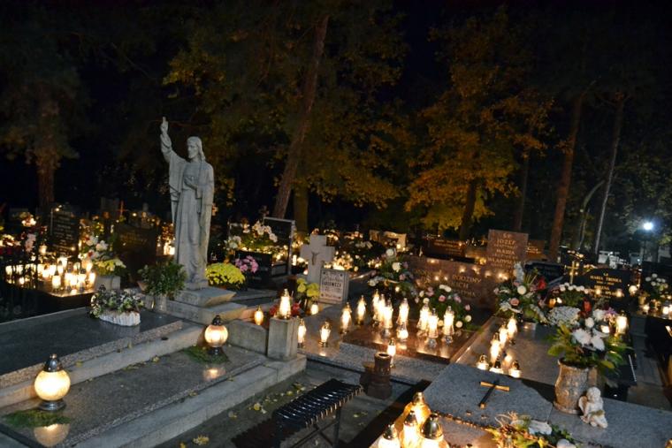 Tak jak podczas każdej Eucharystii Pan zastawił dla nas stół, wielu skorzystało z zaproszenia i przyjęło Komunię Świętą zapewne ofiarując ją za swoich bliskich zmarłych. Po końcowym błogosławieństwie odbyła się procesja z modlitwami za zmarłych. Modlitwie przewodniczył ks. kan. Krzysztof Ordziniak. Przy pierwszej stacji modliliśmy się za zmarłych biskupów, kapłanów, diakonów, braci i siostry zakonne. W sposób szczególny polecaliśmy kapłanów, którzy posługiwali w naszej wspólnocie parafialnej. Druga stacja była miejscem modlitwy za zmarłych rodziców i przodków. Ważna jest pamięć o tych, którzy przekazali nam życie, wiarę, troszczyli się o przekaz tradycji. Przy trzeciej stacji polecaliśmy miłosierdziu Bożemu braci, siostry, dzieci, współmałżonków, krewnych, rodziców chrzestnych, wychowawców, dobrodziejów. To ważne w naszym życiu osoby, które zostały nam postawione na naszej drodze do nieba, ci od których doświadczyliśmy wiele dobra. Kolejna stacja stała się okazją do modlitwy za wszystkich zmarłych spoczywających na naszym cmentarzu, za poległych i ofiary wojen. Przy ostatniej stacji modlitwą objęliśmy wszystkich zmarłych, których wiarę znał jedynie Bóg i o których Kościół zawsze pamięta.