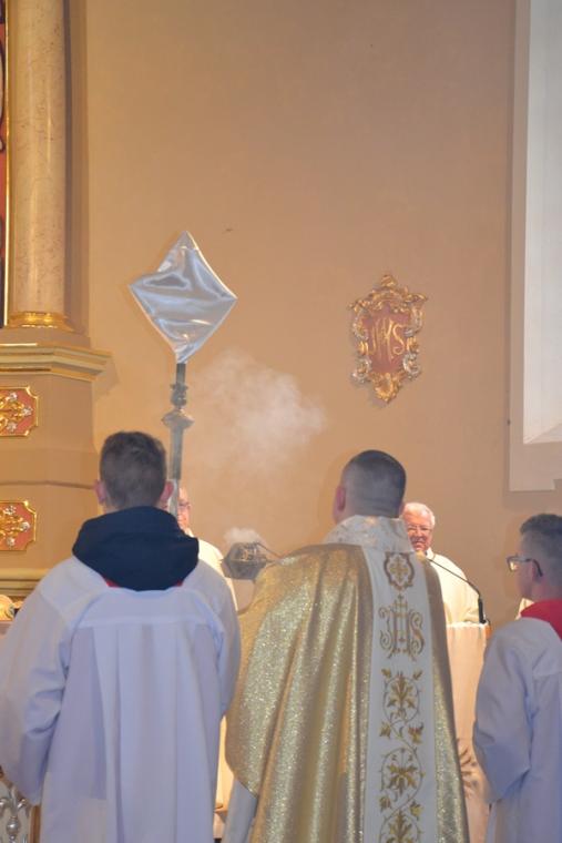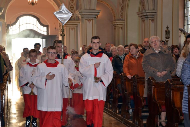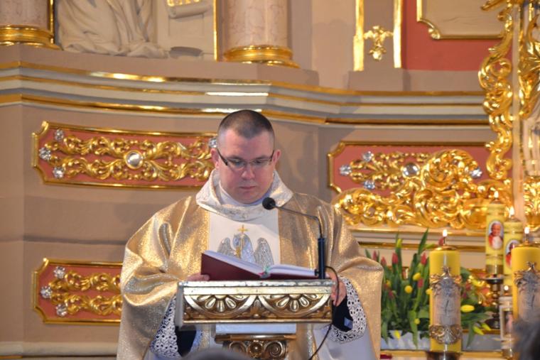 Homilię podczas Mszy Wieczerzy Pańskiej wygłosił ks. Marcin, który na początku ukazał jak wyglądały przygotowanie do tradycyjnej paschy żydowskiej. Zwrócił uwagę na szczególna troskę o baranka, którego następnie zabijano, bo potrzebna była krew do dopełnienia obrzędu paschy. Nawiązując do Ewangelii zwrócił uwagę, że Jezus spożył wieczerzą z uczniami przed paschą. Podkreślił, że Jezus swoją paschę odbędzie w Wielki Piątek. Kontynuując kaznodzieja zapytał: „ Czym zatem jest to co Jezus uczynił uczniom podczas wieczerzy”? Odpowiadając nawiązał do pierwszego cudu w Kanie Galilejskiej, gdzie puste stągwie, które Jezus kazał napełnić wodą, które zamienił w wino. Woda, tym razem w miednicy, pojawiła się i odgrywa ważną rolę podczas wieczerzy. Kapłan powiedział: „Skoro Jezus spożywa wieczerzę, którą wyprzedza Jego paschę i zamyka w znak, to co my czynimy po dzisiejszy dzień w Eucharystię tzn. że jest to tą sama woda, która zalała grzech Egiptu, kiedy Izraelici uciekali przez suche Morze Czerwone i to ta sama woda, którą Jezus zamienił w wino w Kanie Galilejskiej, to ta sama woda, i to też ta sama woda, która wypłynie z boku Jezusa, gdy Go zabijemy”. Kontynuując ks. Marcin wyjaśnił znaczenie gestu obmycia nóg. Zwracając uwagą na opór Szymona zaakcentował, że to ważny moment dla każdego z nas. Wymaga przyznania się do tego, że potrzebujemy obmycia. Dodał, że jest jeszcze jedna woda, woda Chrztu świętego, która zmywa nas z grzechu. Jednak nadal grzech jest w nas. Dopiero obmycie przez Chrystusa , którym jest Jego śmierć, uwalnia nas od grzechu. Kapłan zaapelował do zebranych: „ Pozwólcie dzisiaj obmyć wasze serca wodą, która stanie się Krwią Chrystusa przelaną za nas na krzyżu. Jezus dzisiaj wino z Kany Galilejskiej przemienił w swoją krew, ale to od naszego serca zależy za kim pójdziemy”. Kontynuując ks. Marcin podkreślił, że to od nas zależy za kim pójdziemy. Podkreślił, że jeśli pozwolimy, by nad naszymi sercami zapanował zły duch, to w naszym życiu nie będzie miejsca na gest obmycia nóg, oczyszczenia i przemianę naszych serc. Kapłan zachęcał zebranych, by zastanowili się co w naszym życiu wymaga przemiany, obmycia w krwi Chrystusa. Kończąc kaznodzieja powiedział: „Niech ta woda, która za chwilę popłynie na nowo oczyści nasze serca, by nie gościł tam strach, przed chęcią zmiany, by nie gościła tam niepewność, czy z Bogiem uda nam się naprawić nasze życie, ale by ta woda, która jest krwią Boga zmyła z nas to co zostawia w nas zły duch, byśmy mogli w końcu wrócić do Boga czystymi stopami naszych serc. Amen”.