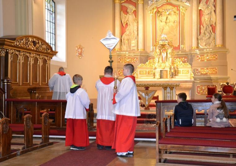 Usłyszane podczas tej liturgii słowa zapewne zachęciły nas do refleksji nad miejscem krzyża w życiu i dodały sił do zmagania się z naszymi krzyżami. Zapewne każdy z obecnych w kościele chce być godnym Chrystusa. Po modlitwie powszechnej nastąpiło uroczyste wprowadzenie i odsłonięcie krzyża oraz jego adoracja. Najpierw uczcili krzyż kapłani, siostry zakonne, ministranci. Po zakończonej liturgii przez całą noc i kolejny dzień taką okazję będą mieli wszyscy wierni. Dodajmy, że krzyż ten niedawno powrócił do kościoła po przeprowadzonych pracach renowacyjnych. Prezentuje się teraz pięknie.
