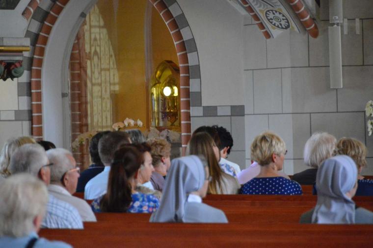 Kolejnym punktem spotkania była adoracja Najświętszego Sakramentu oraz nabożeństwo czerwcowe, ku czci Najświętszego Serca Pana Jezusa. Po litanii zaproszeni małżonkowie podzielili się swoimi świadectwami dotyczącymi sposobów realizacji miłości małżeńskiej i odpowiedzialnego rodzicielstwa.