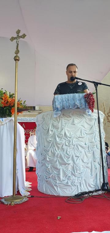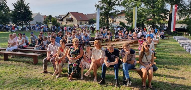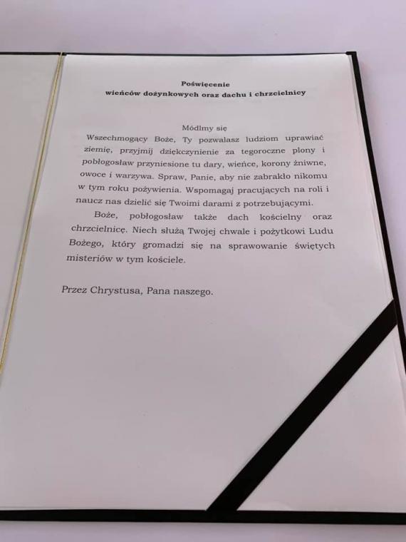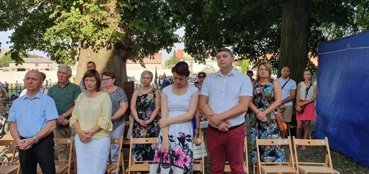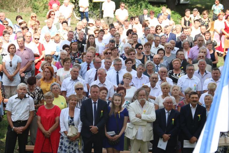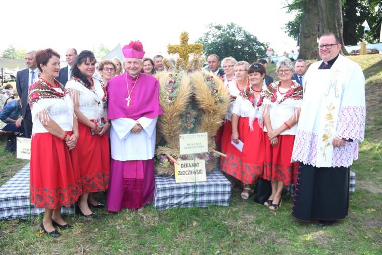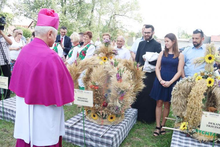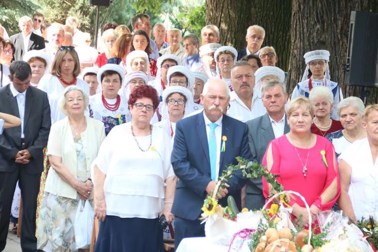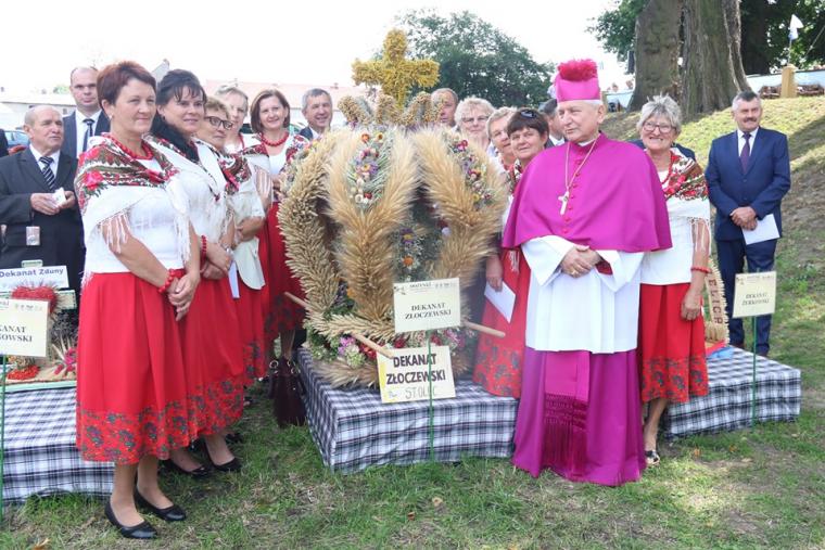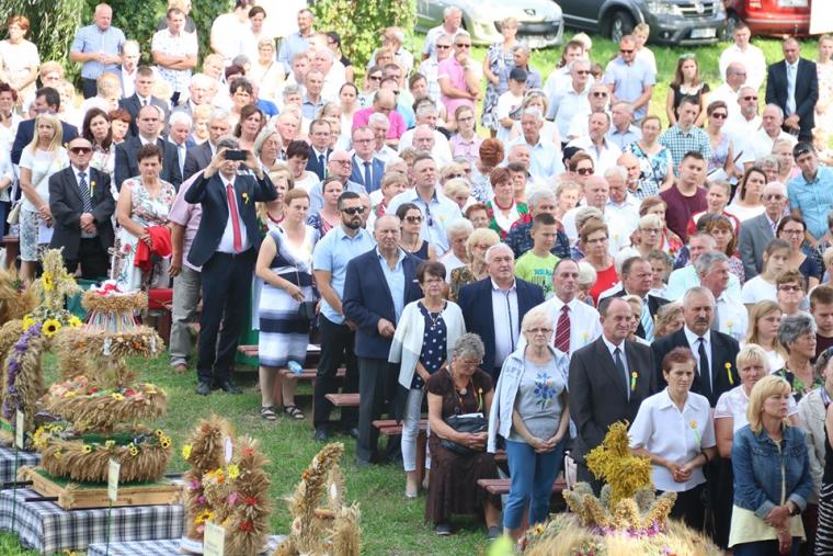 Po Eucharystii starostowie dożynek: Monika i Karol Grzeszczyk z Rudy w gminie Zduny oraz starostowie pomocniczy Agnieszka Kaj i Jan Jaskuła z Lutogniewa oraz Małgorzata Ziętek z Fijałowa i Bronisław Koncewicz z Długołęki w gminie Kobylin złożyli bochen chleba na ręce biskupa kaliskiego Edwarda Janiaka, kustosza Sanktuarium Matki Bożej Pocieszenia w Lutogniewie ks. kan. Łukasza Żurawskiego i starosty krotoszyńskiego Stanisława Szczotki. W swoim wystąpieniu biskup kaliski prosił, aby młode pokolenia uczyć miłości do ziemi: „Dzisiaj trzeba mówić dzieciom i wnukom o przodkach. Trzeba uczyć miłości do ojczyzny. Dzisiaj, kiedy jesteśmy w Europie i napływają do nas te wszystkie trendy, również negatywne to bardzo ważne jest, aby pielęgnować wiarę, uczyć modlitwy. W tej wielkiej Europie jesteśmy taką gwiazdą nadziei tradycji, świętości, miłości do Kościoła i ojczyzny.”.