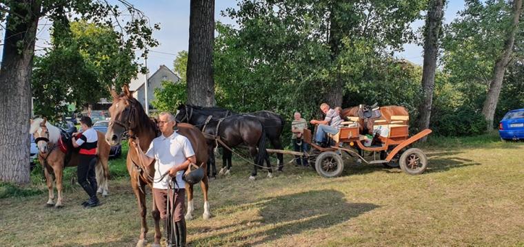 W godzinach popołudniowych odbył się przejazd i zaprzęgów konnych w ramach X Pielgrzymki Konnej, która wraz V Pielgrzymką Motocyklową uczestniczyła Eucharystii odprawionej przez ks. Mirosława Ziembińskiego. Paradą motocyklową uczestnicy pielgrzymki podziękowali za tak piękne kolejne już spotkanie. Główne uroczystości odpustowe zakończyły się nabożeństwem różańcowym i Apelem Jasnogórskim.